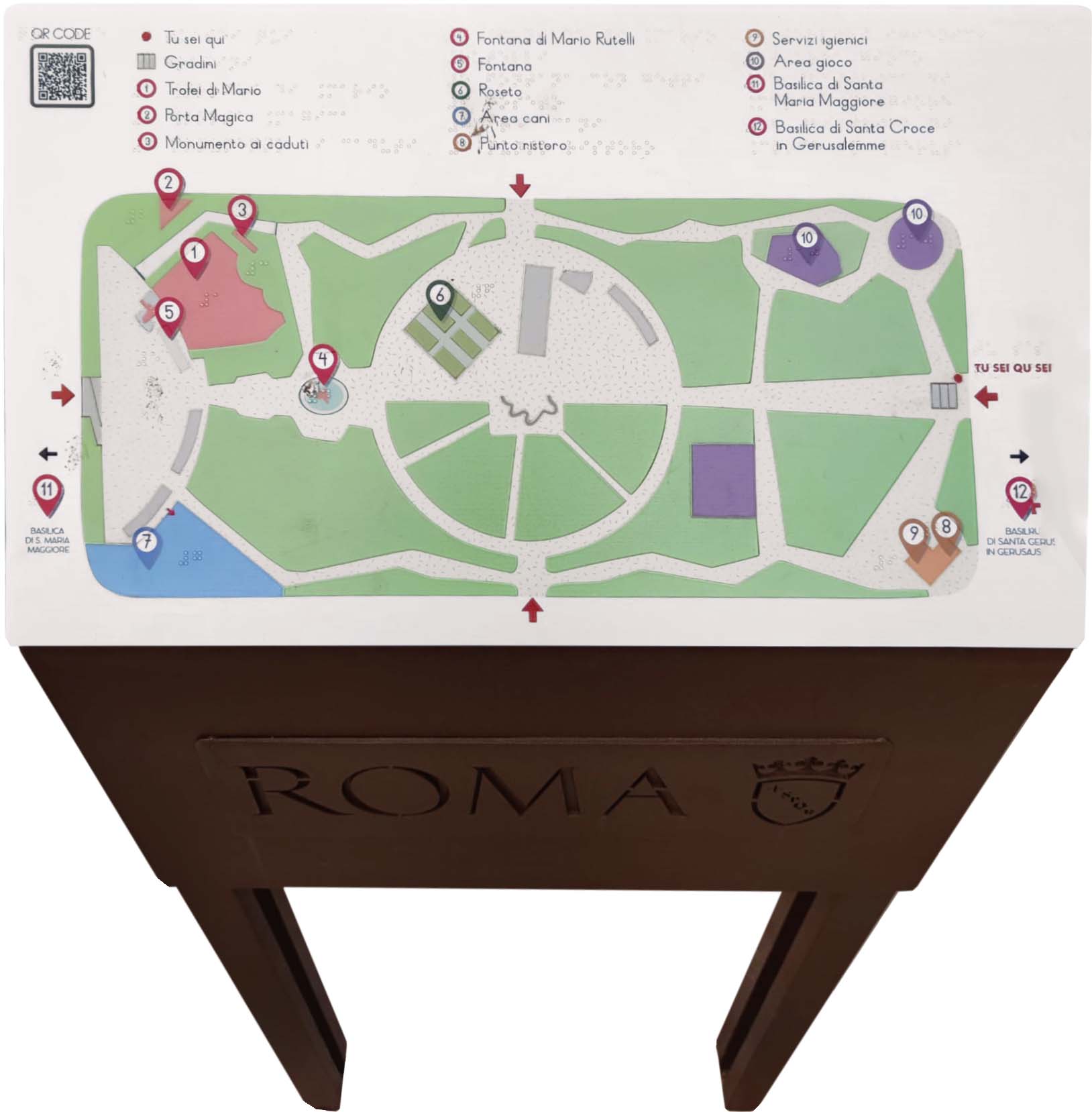 mappa tattilein quadricromia e Braille in trasparenza. Con loghi e QR-code.