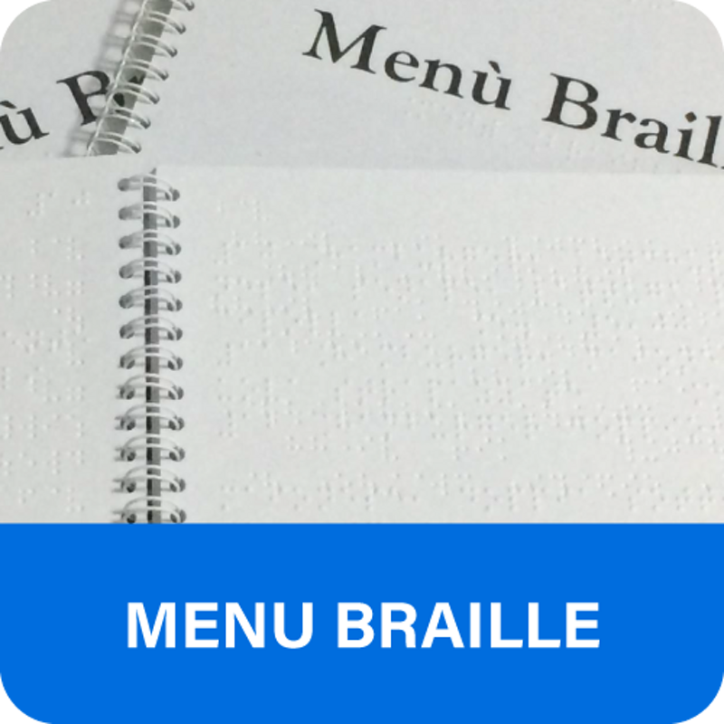 comprende n.° 3 menù da 16 pagine 8 fogli solo Braille impresso + copertina rigida e rilegatura è possibile acquistare il pacchetto da 3 o 10 menu
